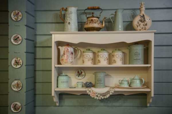 Отдельного внимания заслуживает посуда – изысканные сервизы с рельефными краями и цветочной росписью обязательно должны красоваться на открытых полках серванта. Идеальную компанию им составят задекорированные в технике декупаж баночки и бутылки, плетеные корзины, натюрморты из овощей и фруктов, живые букеты и комнатные растения в горшках.