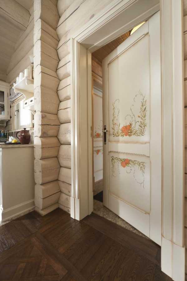 Входные двери и оконные рамы должны быть только из дерева. Главные двери дома – массивные, с коваными элементами, на больших петлях. А вот межкомнатные могут быть более легкими, с витражными или стеклянными вставками. Лучше выбирать двустворчатую распашную конструкцию – не забывайте, что через двери, как и через окна, в дом должно проникать как можно больше света.
