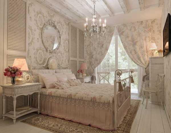 Во французском оформлении спальной комнаты всегда присутствуют простые цветастые обои и текстиль. Стены могут быть отделаны в виде узорчатых панно на однотонном фоне, встречается также обивка деревянной вагонкой, выкрашенной неяркой краской. В стиле прованс нередко используются балдахины над кроватью и светлые занавески на окнах. Ткани применяются легкие, без блеска, преимущественно из хлопка и льна. Постельное белье также должно соответствовать выбранному направлению – предпочтение лучше отдать одноцветным комплектам нейтральных тонов или мелким растительным принтам. Очень хорошо будут смотреться всевозможные оборки и кружева.