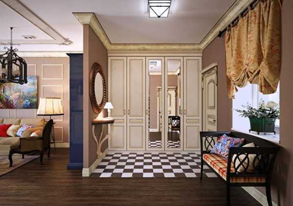 Характерные для прованса пастельные тона и яркое освещение – то, что нужно для скромного коридорчика в квартире. Настоящим украшением прихожей станет белая деревянная вешалка с крючками для верхней одежды и обувной тумбой. Если позволяет площадь, возможны также узкий гардеробный шкаф и встроенное зеркало. Верхнее пространство есть смысл оборудовать под антресоль, укомплектовав полку выдвижными корзинами, ящиками либо закрывающимися дверцами.