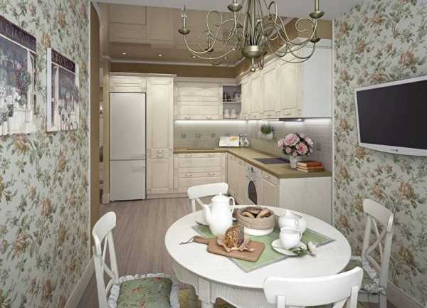 На кухне в стиле французской провинции царит атмосфера деревенского покоя и неспешности. Ее создают деревянные шкафчики, выкрашенные светлой краской, ситцевые шторки, пасторальные рисунки. Прованс гармонично дополняет техника и аксессуары из ретро-коллекций «а-ля XIX век», вытяжка в виде побеленной печной трубы, медные смесители, керамическая фурнитура. Очень уместно на такой кухне смотрится круглый обеденный столик с изящными стульями вокруг.