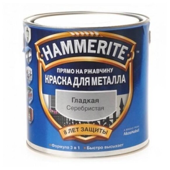 Краска для металла HAMMERITE гладкая белая 0.25л. Краску Hammerite белую можно наносить прямо на ржавчину! А еще это уникальный продукт 3 в 1: 1.Грунт выравнивает поверхность и улучшает сцепление финишного покрытия с поверхностью. 2.Защита от коррозии — останавливает ржавчину. 3.Финишное покрытие — краска с чешуйчатой структурой, создает эффективную защиту металла от воды. Технология двойной защиты Dual Tech с добавлением воска обеспечивает сохранность металлических поверхностей от воды и коррозии на срок до 12 лет. Фосфат цинка в составе краски создает на поверхности защитный слой и препятствует процессу ржавчины.