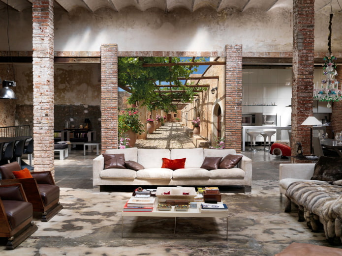 Комбинирование разных моделей также подойдет, когда гостиная имеет большую площадь, и в комнату хочется добавить немного уюта.