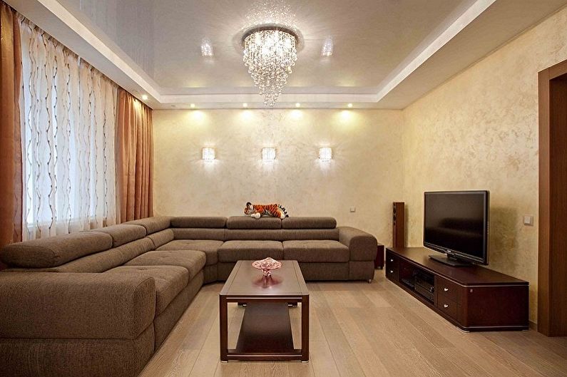 К основным решениям для дизайна зала можно отнести несколько вариантов.
