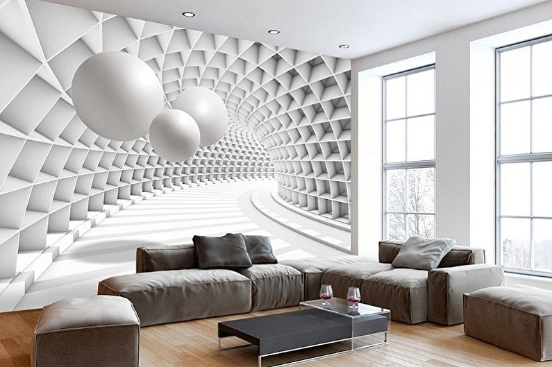 Наибольшую популярность получили фотообои с эффектом 3D в гостиной, расширяющие пространство. Они поражают своим реализмом и необыкновенной глубиной.