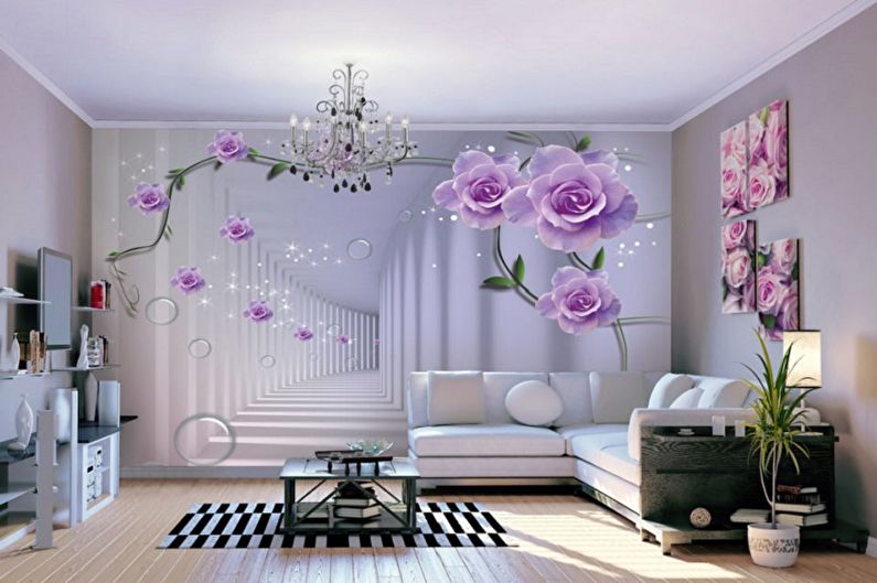 Качественные фотообои, которые верно подобраны способны расширить пространство. На примерах фотографий видно, как картинка способна визуально расширить пространство за счет объемного изображения цветов, такой способ активно используется при дизайн-проектах, когда ставится задача визуально увеличить комнату и расширить кв. м.