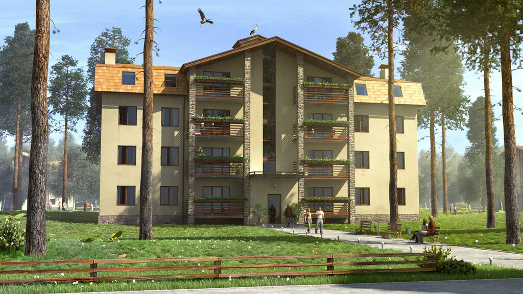 В спальном районе, состоящем из малоэтажного жилого комплекса и новых домов с небольшими балконами, мы запроектировали ЖК 4-х этажный дом.
