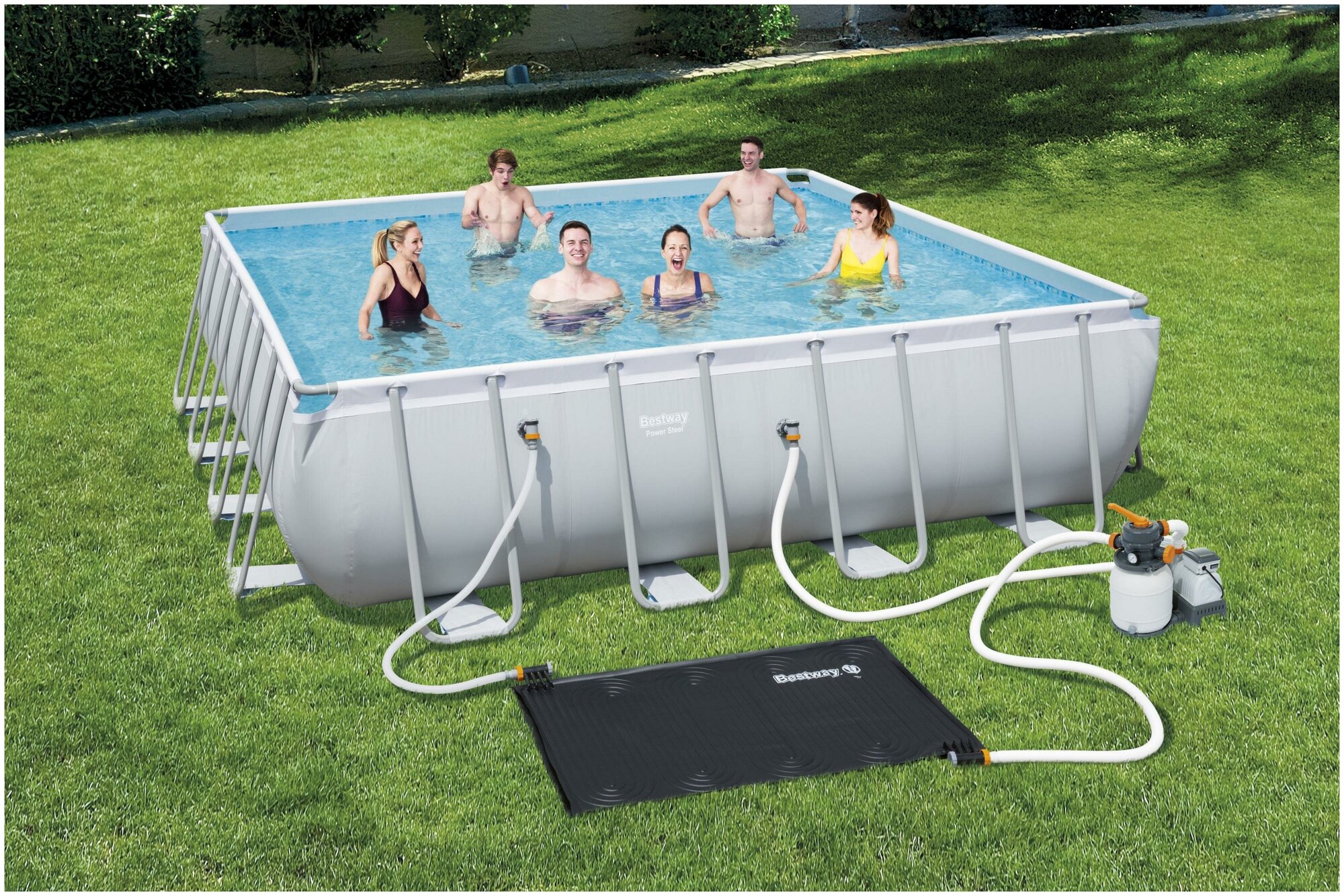 Обогреватель можно установить в систему фильтрации воды. А саму солнечную батарею лучше поставить на крыше дома, если бассейн расположен рядом или непосредственно около него.