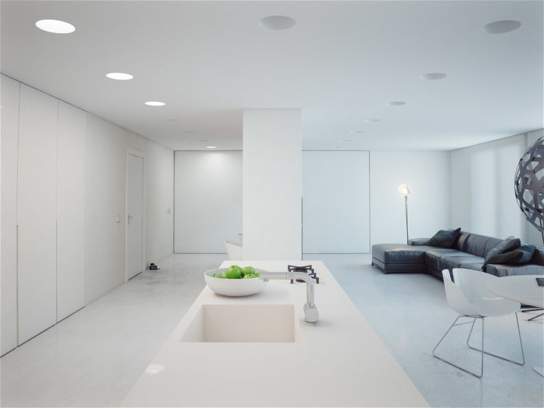 Белый — это отличная идея в дизайне интерьеров малой площади, труднодоступных, узких, слабо освещенных. Комната становятся выразительнее, лучше поглощают естественный свет, делая его ярче. Более того, белые стены делают помещение просторными. Отличным примером является современная гостиная, которая может быть чрезвычайно узкой и продолговатой, имея доступ в свет только благодаря одному окну. Универсальное использование белого делает комнату больше и ярче.