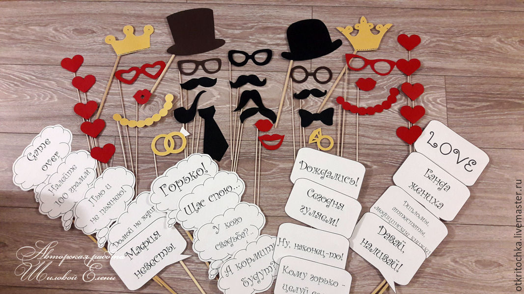 - Реквизит на палочках (забавные усы, шляпки, очки и т.д.).