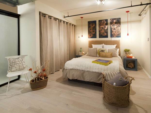 Используя занавески для отделения части комнаты, можно подобрать не просто оригинальные занавески, а запастись, например, двумя комплектами. Для тех, кто любит перемены, занавески – именно тот вариант, который позволит вносить новые штрихи в устоявшийся интерьер. Сменить штору гораздо проще, чем поменять систему дверей гардеробной.