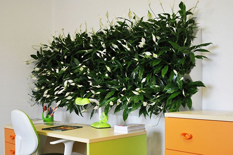 - Наиболее удачным расположением декора послужит расстояние между окнами, над обеденным столом.