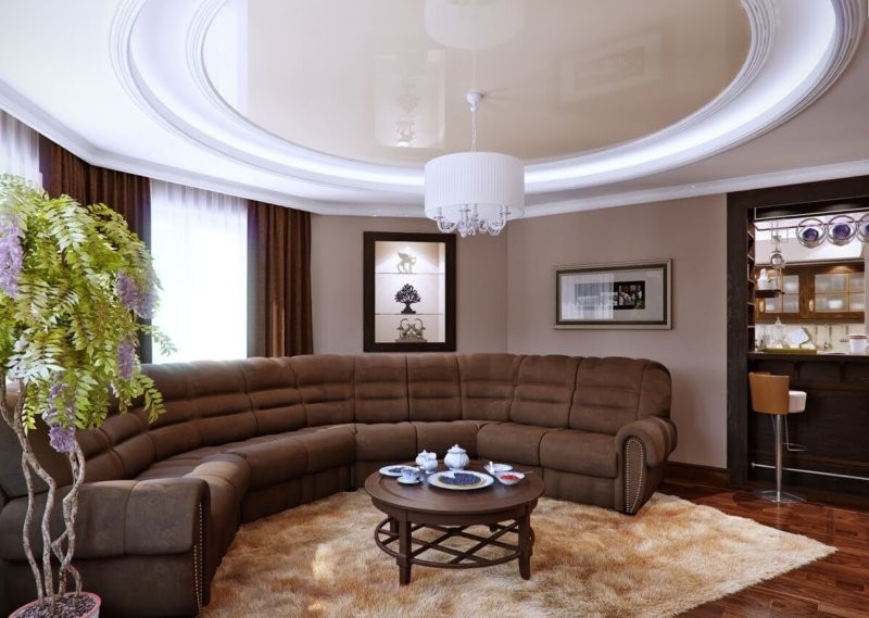 Коричневый будет уместен в любом помещении квартиры. Форму и тип конструкции выбирайте с учетом габаритов комнаты и ваших предпочтений.