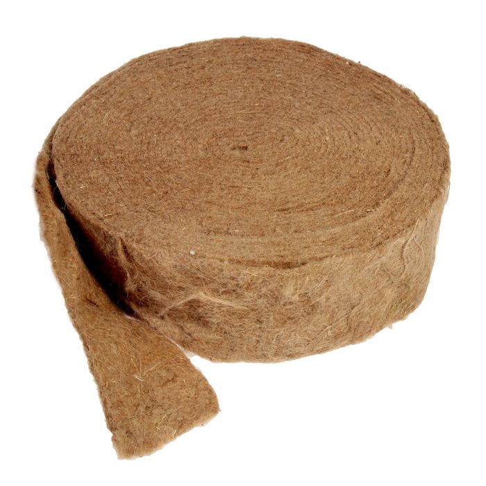 В состав данного утеплителя входит 15% полиэфирного волокна и 85% конопли. Межвенцовый конопляный утеплитель очень популярен в РФ и используется в строительстве деревянных бань и домов из-за своей экологической чистоты и безопасности для здоровья человека. Если говорить о физико-технических характеристиках утеплителя из конопли, то можно сказать, что они превосходят все другие натуральные волокна. - Межвенцовые утеплители из джута. Утеплитель, представляющий из себя ленту, толщина которой составляет 5, 10 или 15 мм, однородной и плотной структуры. Используя данный тип утеплителя, стены приобретут устойчивость к влаге и ветру, а так же идеальные швы, после чего не нужна будет никакая отделка. Если проводить параллели между джутовым и льняным волокном, то первый вариант является очень простым в расстилании, за счет равномерной толщины.