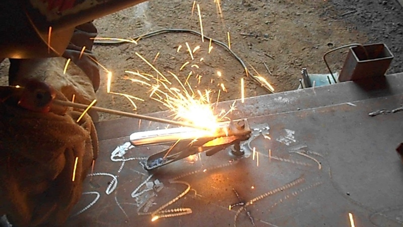 | Эта статья — небольшой теоретический урок сварки для начинающих. Дуговая сварка металла — наиболее общий и универсальный метод соединения металла. Технология дуговой сварки: электрический ток от сварочного источника образует дугу между основным металлом и расходуемым электродом. На электроде горит обмазка, которая выделяет газ, защищающий область от контакта с кислородом воздуха. Окружающий газ перегрет и плавит металл, при этом металл с электрода переносится в сварочную ванну. Когда вы будете учится сварке или что-то чинить, первым шагом будет научится хорошо вести сварочный шов. Перед тем, как начнем жечь электроды, мы узнаем об применяемом оборудовании. Задача сварочного аппарата , независимо от его размера или формы, проста: обеспечить большой регулируемый ток, идущий к электроду. Сварка прямой и обратной полярности. Если вы используете переменный ток, то и электроды должны использовать для переменки. Профессиональные сварщики используют постоянный ток. Сварка постоянным током дает поток электронов одного направления. На сварочном инверторе есть возможность выбрать полярность. Полярность при сварке определяет направление движения потока электронов. И зависит от того, как подключены провода к положительной и отрицательной клемме. Обратная полярность при сварке: плюс на электроде, минус на клемме «земля». Известно, что ток идет от отрицательного к положительному контакту, поэтому электроны движутся от металла на электрод. Это приводит к сильному нагреву конца электрода. Прямая полярность при сварке: минус на электроде, плюс на клемме «земля». Ток идет от электрода к металлу, электрод холодный, а металл горячий. Это используется в специальных электродах для скоростной сварки листового металла. Комплектация сварочника. Запомните! Разные аппараты сваривают по-разному! Поэтому при обучении используйте один аппарат, насколько это возможно. Также важны изолированные медные провода. Они бывают разных размеров (сечения). На конце основного провода ставится быстросъемный зажим, к нему присоединяется 3 или 4 метровый провод определенного сечения с электрододержателем, он может быть разным: небольшим на 200А или более крупным на 300 А или даже на 500А (используются для толстых электродов и больших токов). Для обычного (домашнего) применения 200А удобнее. Есть разные виды держателей: один как пасатижи, а есть держатель сварочный, в который вставляют электрод и поворачивают ручку (если нужен электрод под различными углами, вы можете согнуть его у основания). Светофильтры. Яркость дуги очень высокая, поэтому вам нужен защитный светофильтр, для того, чтобы видеть расплавленную ванну и для того, чтобы защитить глаза от ожога. Они бывают разных номеров. Меньше цифра — светлее фильтр маски сварщика. Люди по-разному чувствительны к свету. Светофильтр сварщика должен защищать глаза, но вы должны ясно видеть сварочную ванну. Если вы используете толстые электроды и большие токи, вы должны применять светофильтры с большим номером. Светофильтры для масок достаточно хрупкие. Чтобы защитить их от искр или царапин используйте защитные пластиковые стекла спереди и сзади. При сборке маски используйте уплотнитель и клипсу. После установки фильтра посмотрите на свет, проверьте, что нет зазоров. Когда начнете варить, проверьте снова, и если ест
