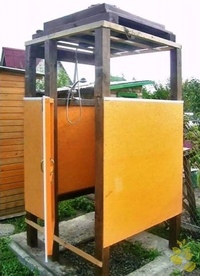 Утеплив стены и крышу пенополистиролом, обшитым сверху ПВХ-пленкой, добиваются возможности использования душа в весенне-осенний период.