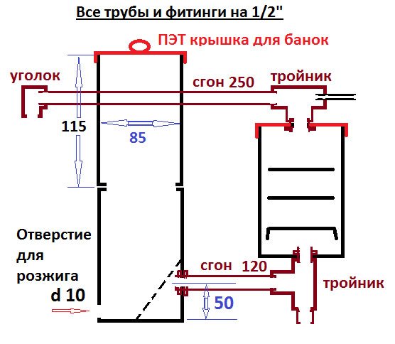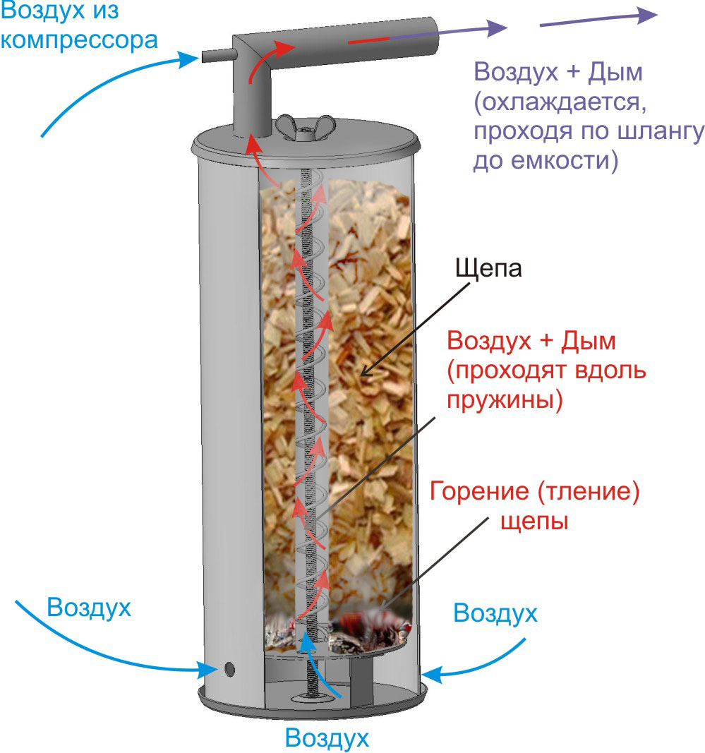 Схема дымогенератора состоит из трех основных компонентов: