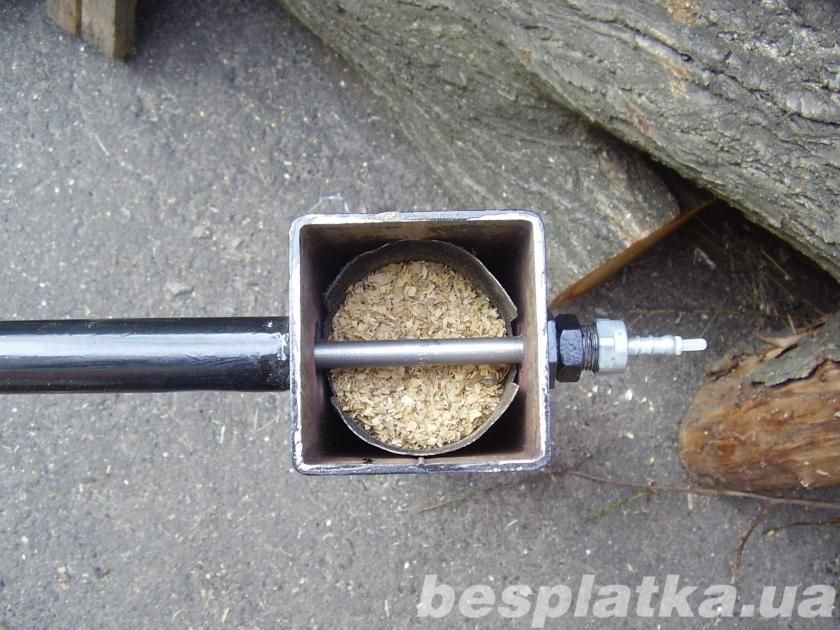 При использовании крупнофракционной щепы нужда в пружине отпадает, так как дым проходит сквозь нее свободнее. За счет коррекции длины трубки между генератором и рабочей зоной копчения подбирается нужная температура дымового потока.