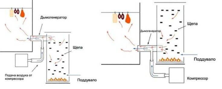 - Наличие между коптильней и генератором дыма герметичной трубы, по которой проходит дым.