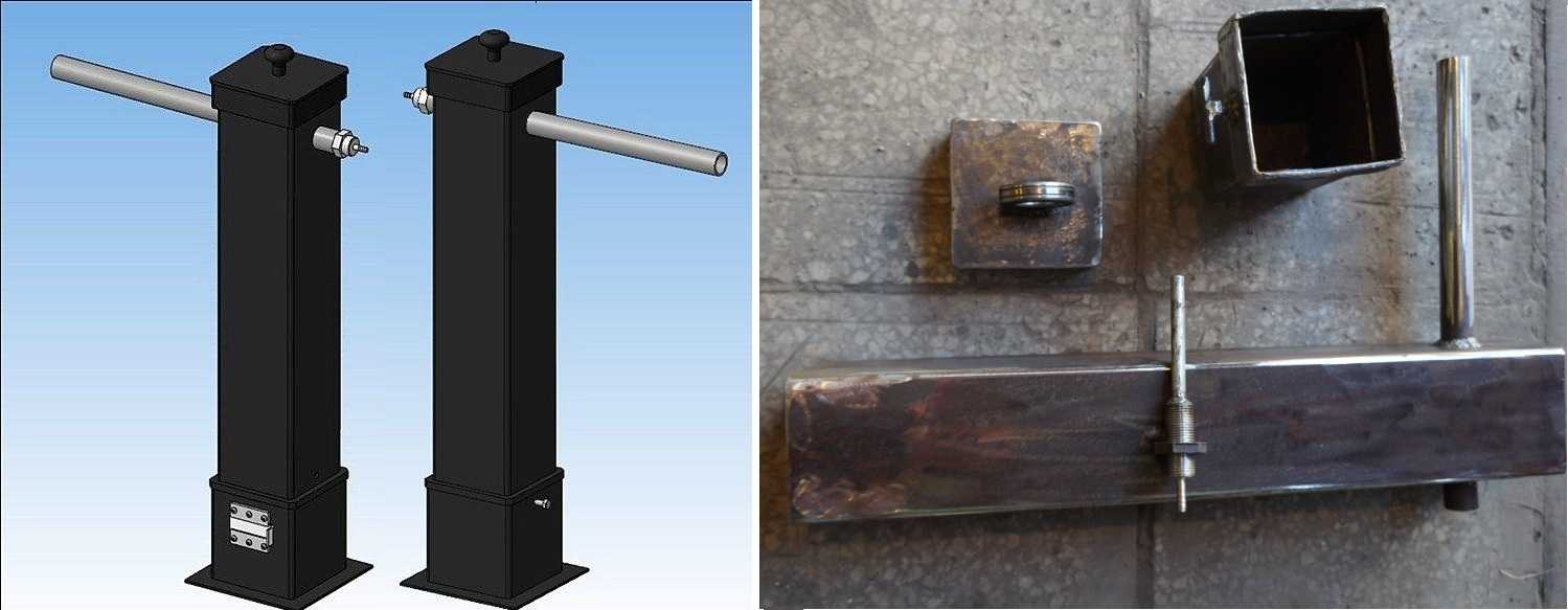 Фото 2. Чертёж и компьютерная реконструкция дымогенератора для коптильни холодного копчения.