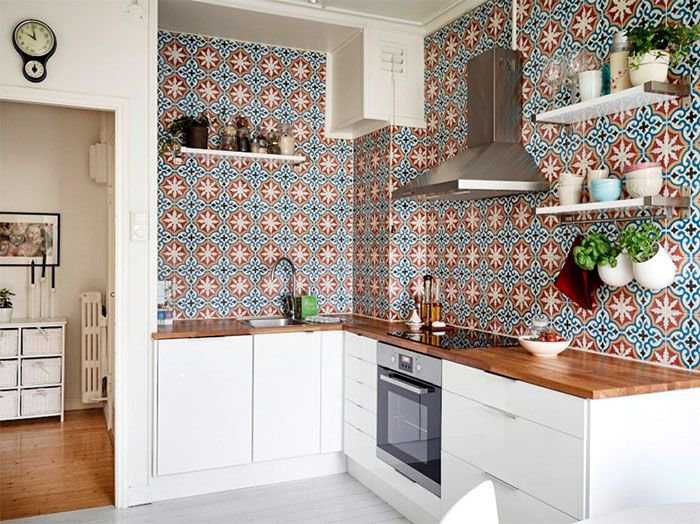 Какими бывают цвета и рисунки плитки для кухонного фартука