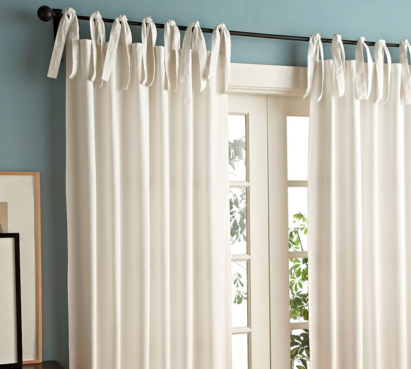 Если интерьер и без того заполнен текстилем, дизайн штор должен быть простым. При этом можно купить варианты парного типа, которые можно будет повесить крест-накрест или зацепить на противоположные подхваты.