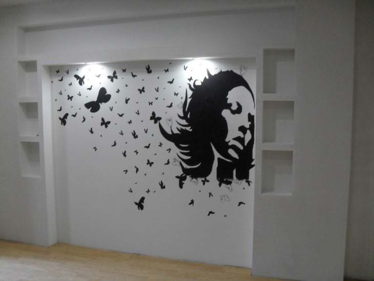 Простой рисунок не испортит его, а добавит интересную изюминку. Многоцветный рисунок лучше использовать на однотонных поверхностях, добавляя оформлению красок, цвета, живости. Рисунок должен быть не одиночным, а сочетать разные формы, фигуры, орнаменты, соединенные в целостной композиции. Особой популярностью на сегодняшний день пользуется объемный рисунок: в изготовлении используется шпаклевка. Готовый рисунок по объему достигает 4 мм. Иногда применяют обратные трафареты: использование подразумевает закрашивание не внутренней части трафарета, а внешней. Не забывайте, что трафарет не обязательно использовать отдельно, ведь он может стать частью красивой, логически завершенной композиции, делая трафареты неповторимыми. Так, изображение бабочек прекрасно сочетается с рисунками цветов, стрекоз, небольших птиц.