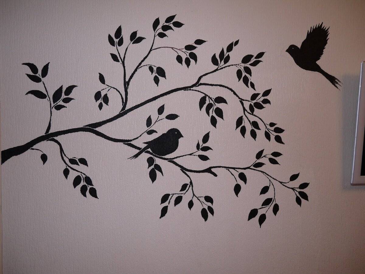 Нанесение рисунка с помощью трафарета не требует особого художественного навыка, но в то же время выглядит весьма впечатляюще, являясь прекрасным вариантом украшения интерьера.