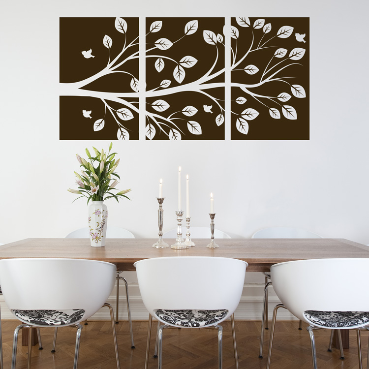 Если же мебель расставлена плотно, лучше отдать предпочтение небольшим декоративным рисункам и узорам . Подобные изображения могут помочь вам выделить смысловой центр в интерьере или разделить комнату визуально на несколько зон.