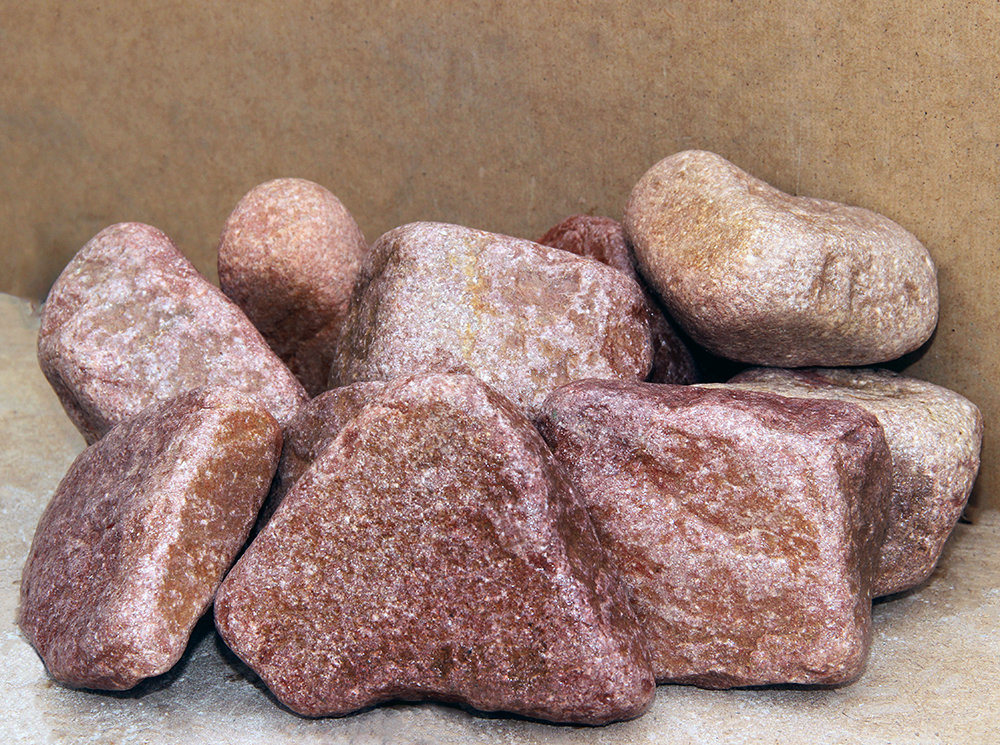 Еще один «элитный» минерал для парилки – малиновый кварцит. Его характерная особенность – насыщенный пурпурный цвет. Как и у жадеита, это влечет за собой достаточно высокую цену, но оригинальный вид вашей бани стоит этого. Плотность у булыжников высокая, а водопоглощение – низкое. Кроме того, свойства камня кварцита для бани включают в себя повышенную прочность и износостойкость.