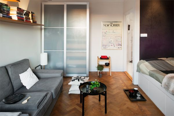 Прекрасным выбором будет использование мебели-трансформера, которая будет сочетать в себе несколько полезных функций, в совокупности с компактностью. Но важно заметить, что недопустимо использование темных цветов.