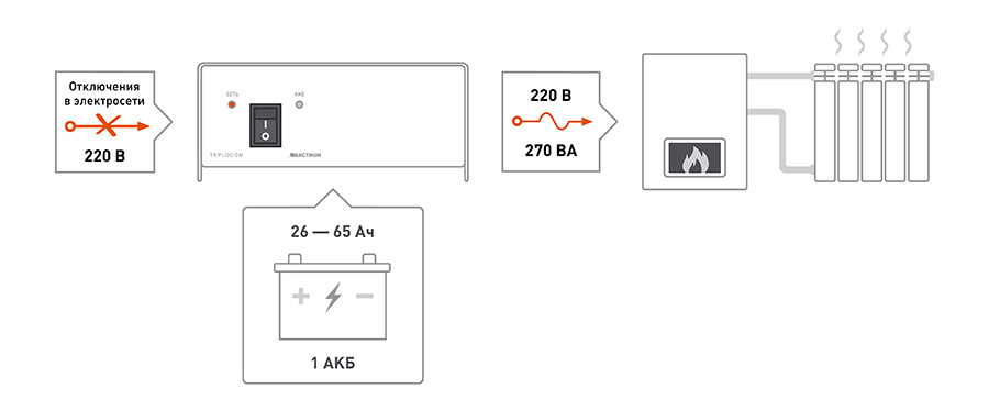 Для бесперебойного питания газового котла отопления в случае отключения сетевого питания необходим резерв, измеряемый часами или даже десятками часов.