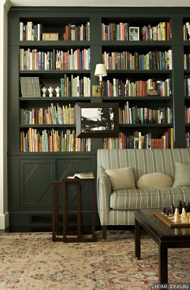 И наоборот – если вы выбрали коричневые или шоколадные тона для стен и пола и затрудняетесь с выбором цвета мебели, рассмотрите свежие и сочные зеленые оттенки, как на фото выше, – яблочно-зеленый, фисташковый, лайм, цвет киви. Они прекрасно смотрятся на темном фоне, оттеняют красоту шоколадного цвета и одновременно не дают комнате стать слишком солидной.