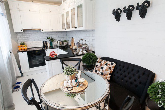 - несколько объемных стульев стоит заменить угловой банкетной или вместительной скамьей.