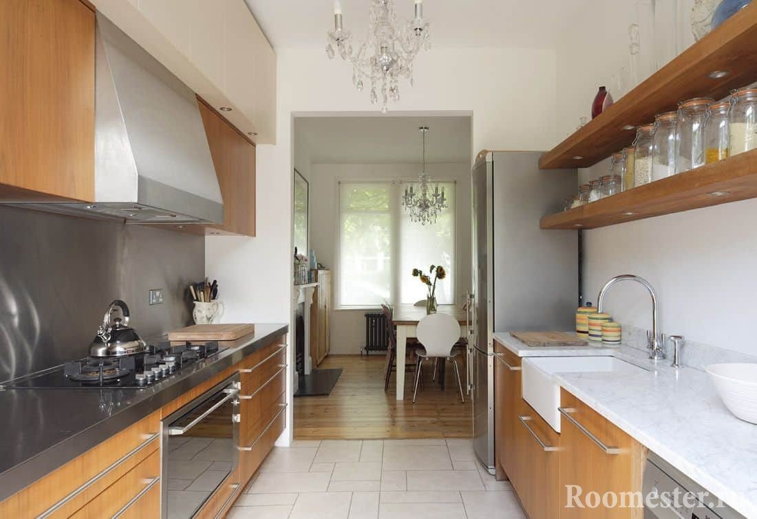 Сделать пространство узкой длинной кухни функциональным помогут следующие рекомендации: