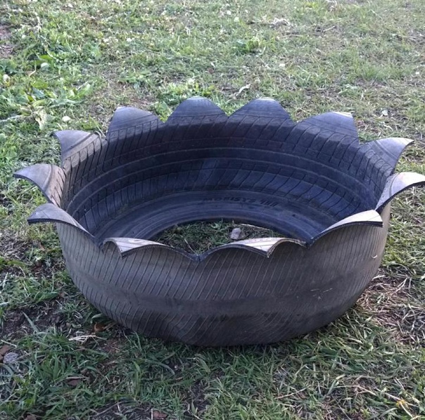 - Для этого внутренний край резинового колеса вырезается в форме зигзага или волнообразно, затем изделие выворачивают, шлифуют и покрывают нужной краской.