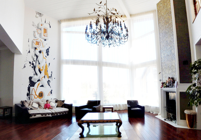 Роспись акриловыми красками — это самый популярный вид нанесения картин на стены в интерьере. Для росписи акрилом очень важно хорошо подготовить «холст»: стена должна быть идеально выровнена. Акрилом рисуют поверх верхнего слоя штукатурки, предварительно нанеся слой акрилового грунта, чтобы рисунок лучше держался.