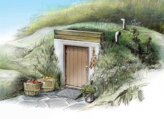 Создание корневого погреба: в этой статье Элиота Коулмана подробно рассказывается о местонахождении, дренаже, изоляции и влажности. Включает иллюстрации. Описывает несколько простых приемов, например использование закопанных в землю металлических мусорных баков.