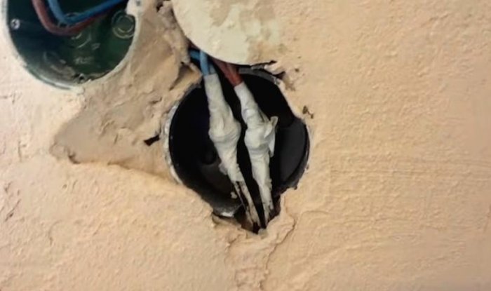 - При работе с проводкой, которая была повреждена в ходе ремонта, можно не только выполнять соединение повреждённых частей, но и выполнить в нужном месте вставку из медного провода.