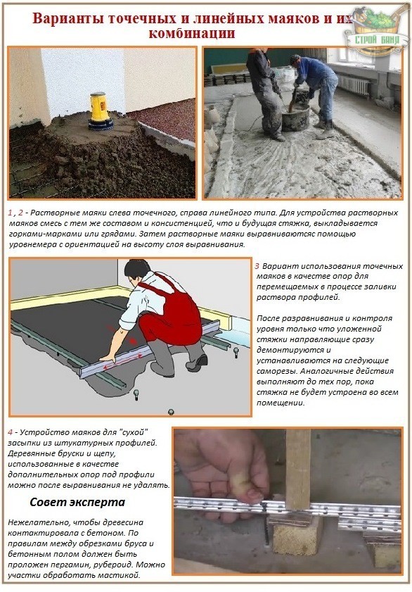 Маяк используется для полусухой стяжки
