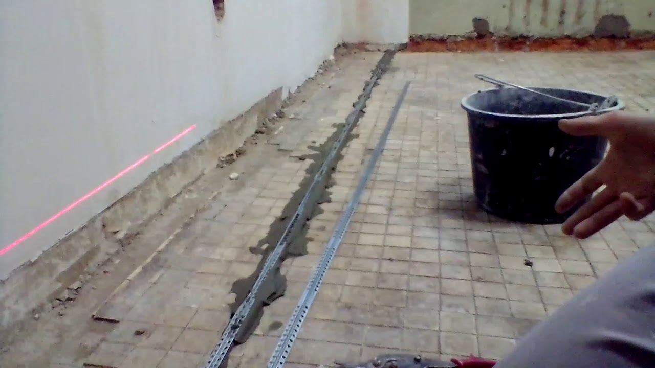 Все, что вам нужно сделать, это приготовить раствор (погуще), заложить насыпь по направлению от дальней стены к выходу, установить на нее П-образный металлический профиль в перевернутом виде государство.Раствор можно использовать на основе гипса или цемента.