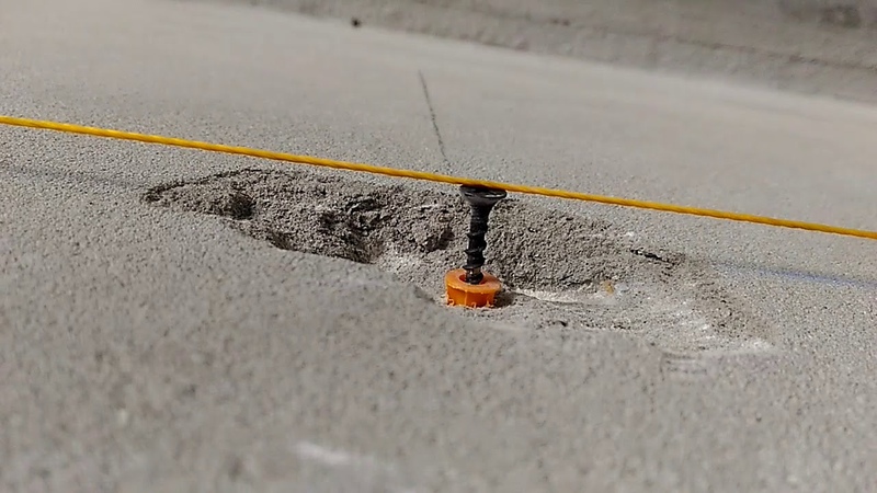 Резьбовая навивка облегчает завинчивание на требуемом уровне для последующей натяжки между ними строительной нити. Вдоль шнура затем выкладывается горками цементный раствор для установки направляющих. Устанавливаемые профили опираются на сформированную горку и погружаются в цементный раствор до необходимой отметки таким образом, чтобы опорная поверхность коснулась натянутого между шурупами шнура. Интервал между находящимися в противоположных рядах саморезами должен позволять использовать правило с запасом в каждую сторону по 5–7 см.