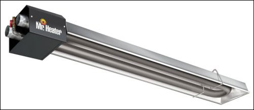 This Mr. Heater 45 000 BTU Propane Low-Intensity Radiant Tube Heater обогреет ваш гараж, но он немного дороже, чем принудительные воздухонагреватели.