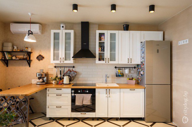Для маленькой кухни деление на зоны – задача непростая, но и в такой ситуации есть немало оптимистичных дизайн-примеров.