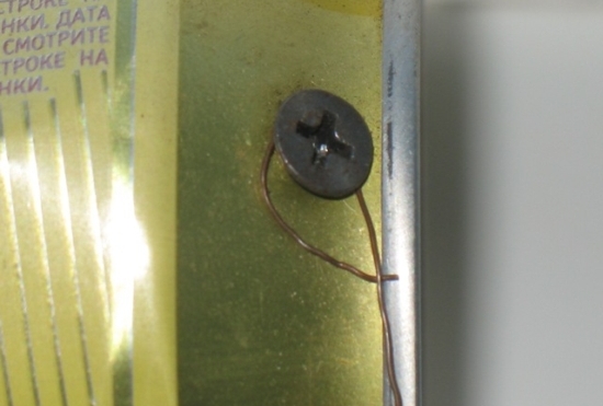 В банки вкручиваются саморезы, а концы кабеля зачищаются и прикручиваются к саморезам.