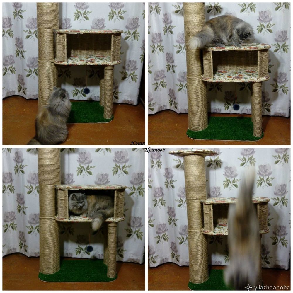 Также можно сделать напольные гамаки или натянуть спальные места между стойками. Вариантов очень много, и какой из них выбрать — решать вам, ну и вашей кошечке.