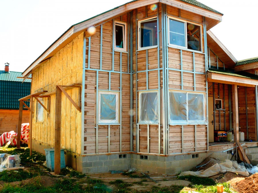 Независимо от того, чем утеплить деревянный дом снаружи, материал дополнительно облицовывается сайдингом, блок хаусом или кирпичом. Технология будет различаться в зависимости от того, подо что она делается: сайдинг или штукатурка. Для того чтобы наружный утепляющий слой не касался земли (не было контакта с землей), его обеспечивают фундаментом 30-60 см. Перед работами дом снаружи своими руками обрешечивается брусьями из дерева, чтобы края утеплителя не подворачивались.