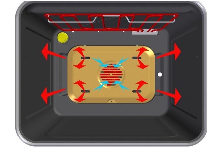- Конвекция – система вентиляции, обеспечивающая равномерное запекание продукта за счёт всестороннего прогрева горячим воздухом;