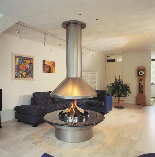 Островной камин — современное и оригинальное решениеТеперь рассмотрим в каких местах можно размещать камин: