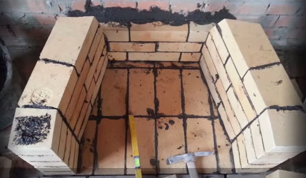 - С 14-го ряда начинается формирования наклона задней части топливника. Этому надо уделить особое внимание. При необходимости выкладывать ряд «насухо», производить точную подгонку, а затем уже вести кладку на раствор.